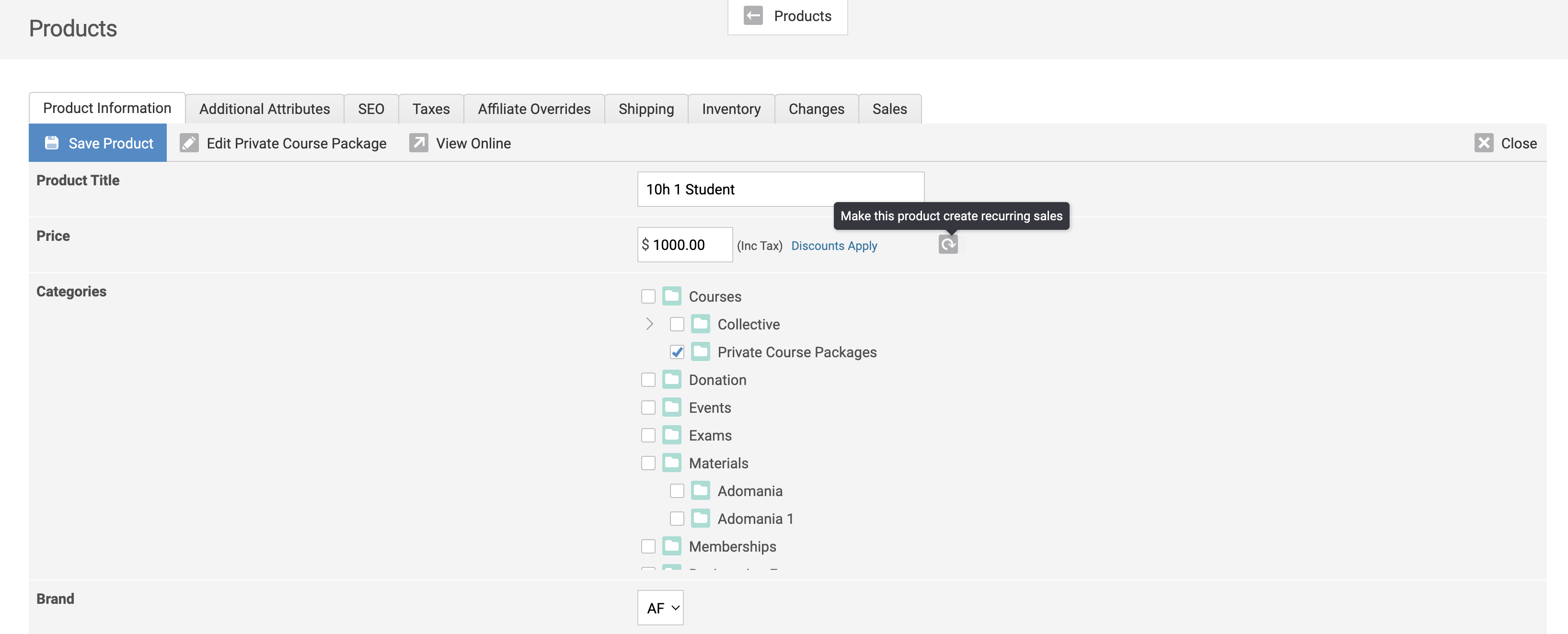 In this article we run through how to set private course packages to be automatically renewing using our recurring sales module. This feature can be used for students to purchase a subscription of hours.