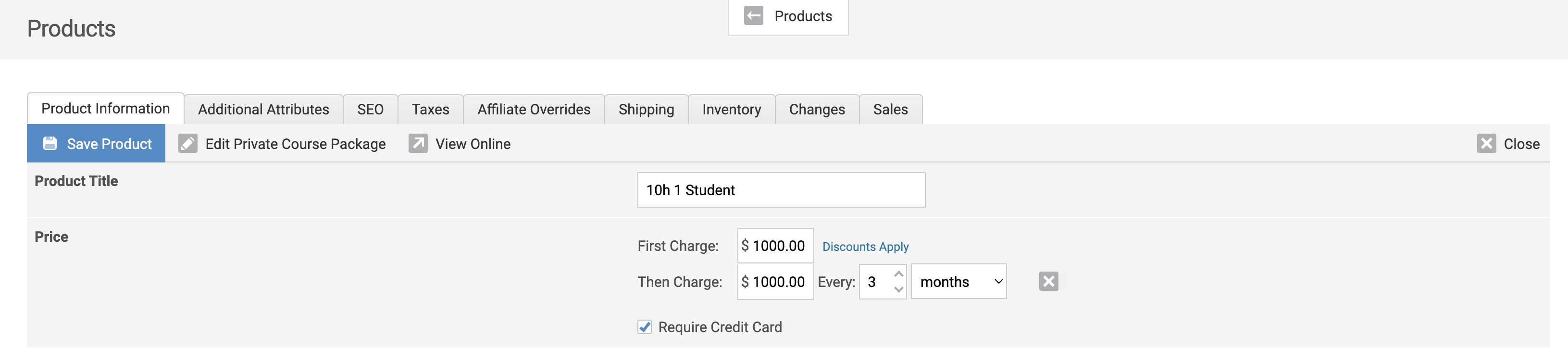 Once you have the two above items ready. Follow the steps below to set your private course packages to be recurring.