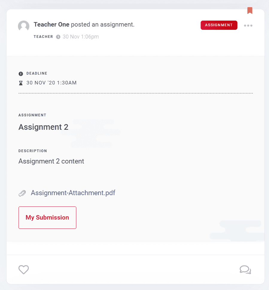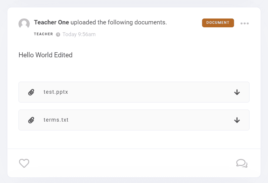 There are multiple post types and these are Regular Post (may contain photos, videos and files), Assignment and Document. Each