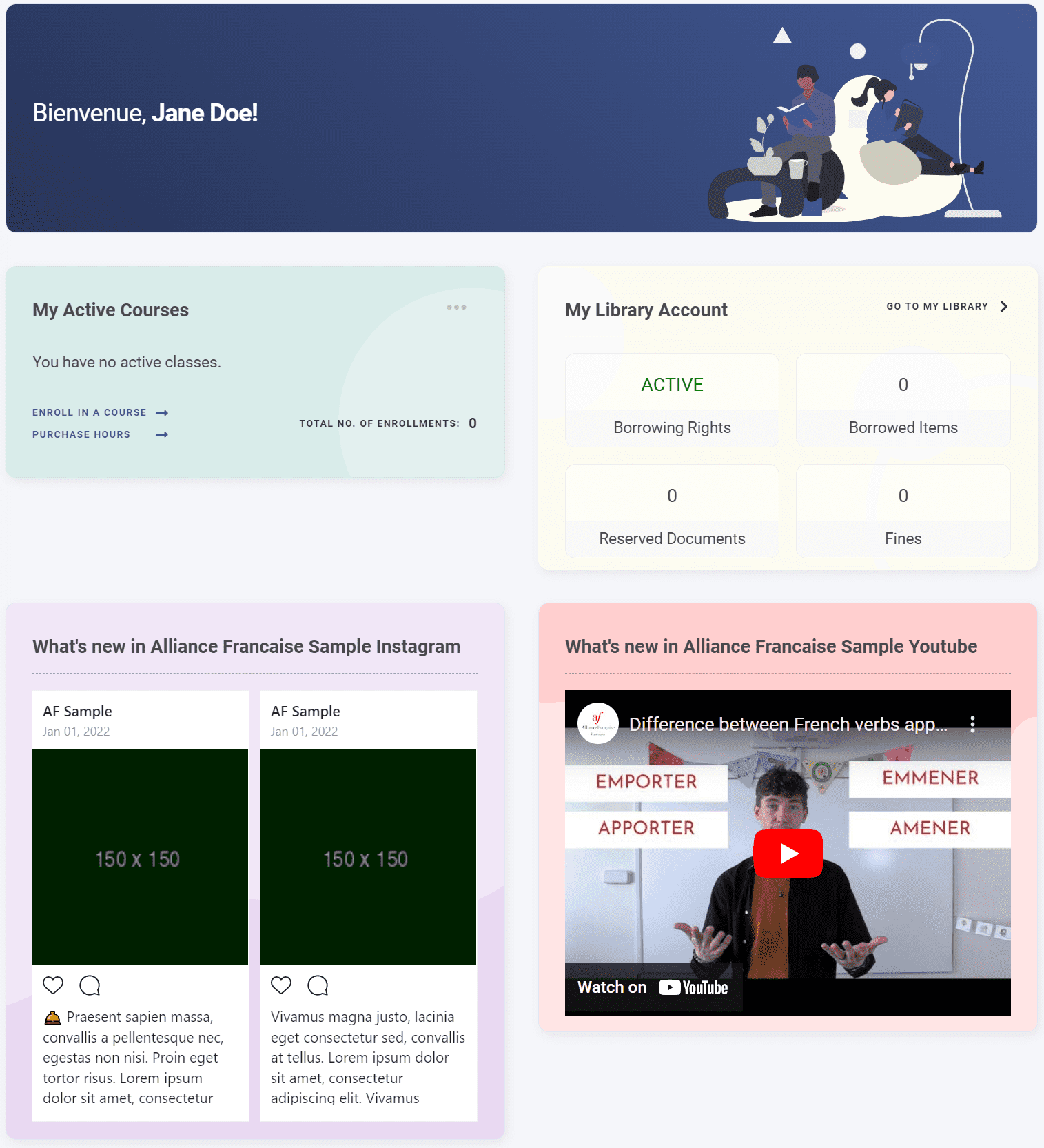 The Student Portal has widgets that help to provide different sets of information to students. These widgets can be configured from the widgets tab of the Student Portal configuration page https://www.yoursite.com/admin/af/courses/configuration/student-portal/.
