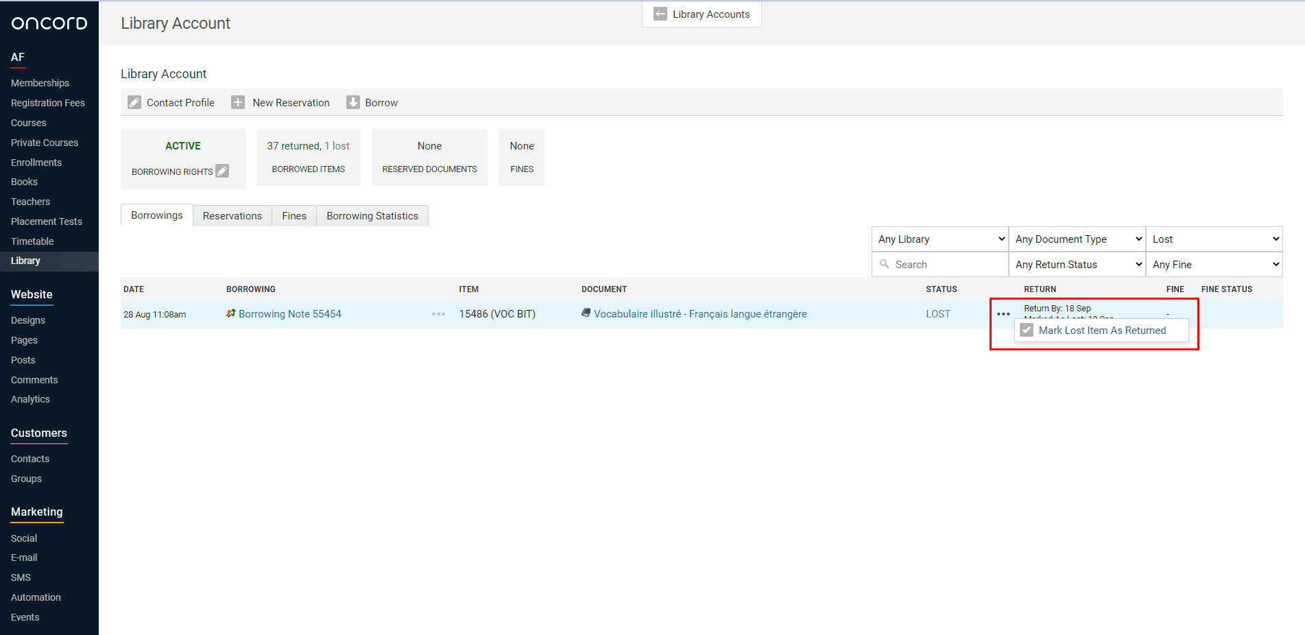 Items that were lost from being borrowed can now be marked as returned. This option is available at Library Account and Borrowings.