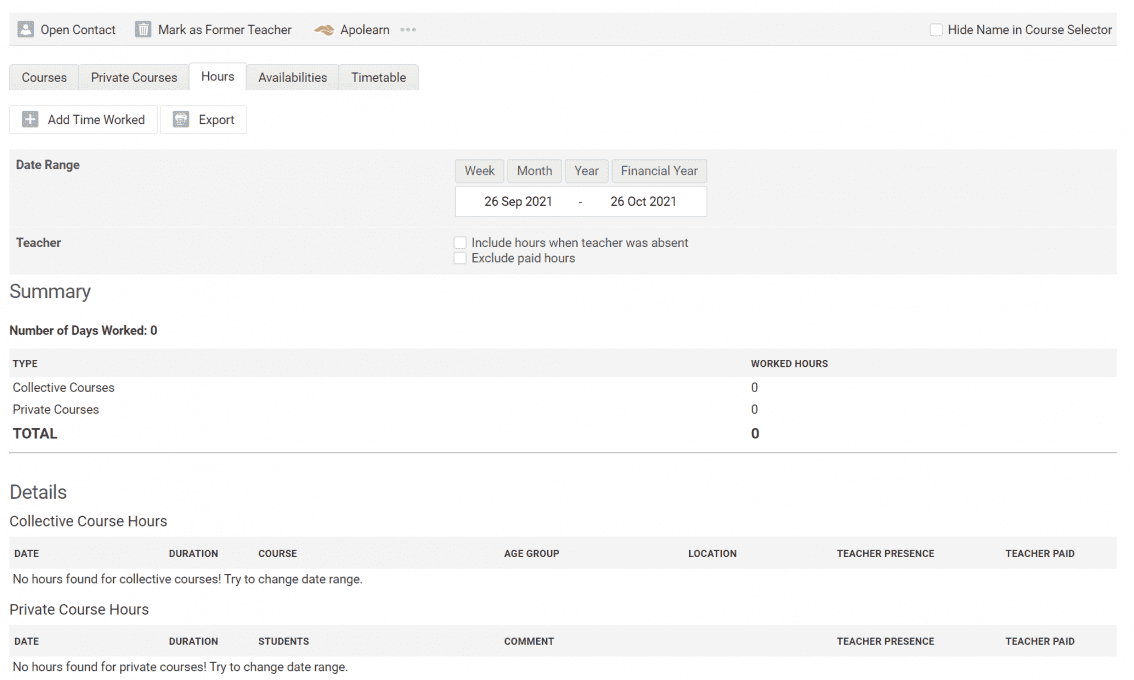 Teacher Hours can now be viewed beautifully including its summary. The hours can also be exported as an excel or pdf file and can be printed