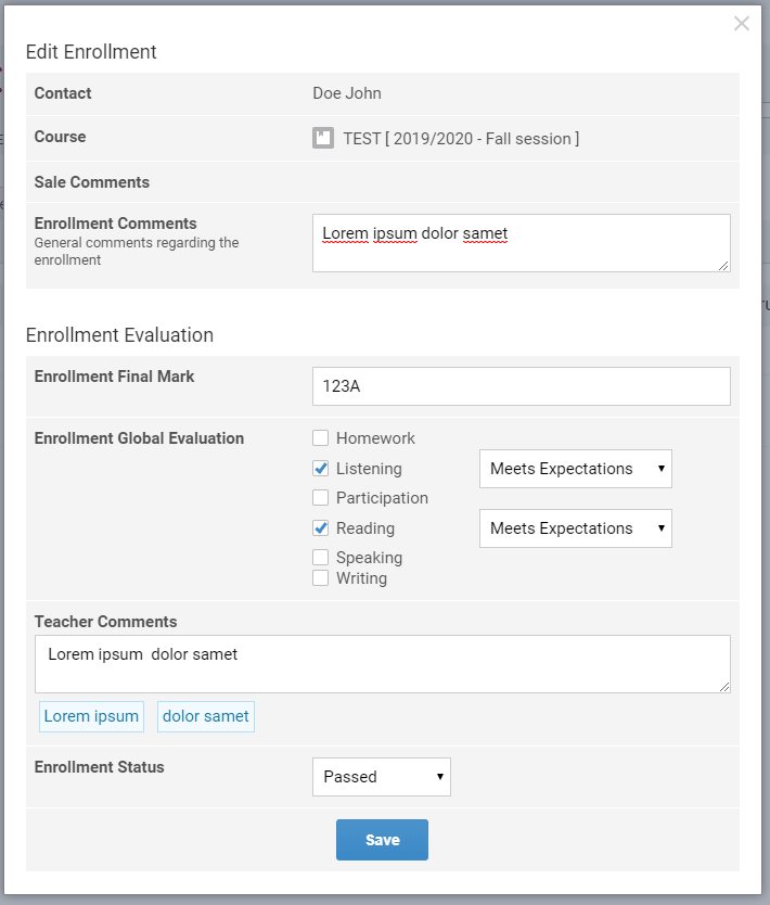 You can also define here pre-filled teacher comments to be made available on the edit enrollment dialog.