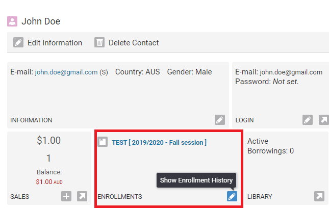 Contacts Enrollment History