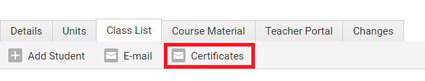 Certificates button in Courses > Class List.