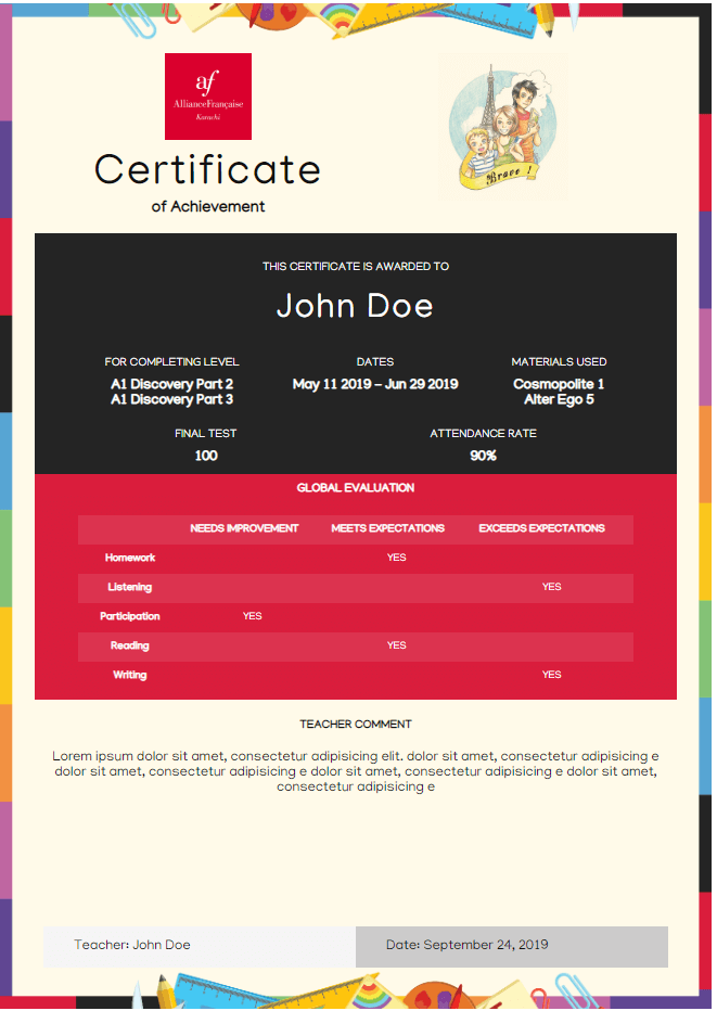 Below are certificate templates that can be used for Kids and Teens: