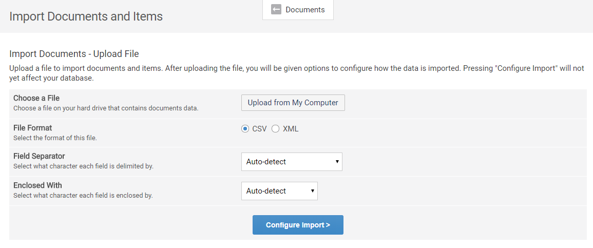 It includes a wizard where you can select where the spreadsheet of documents will be imported into.